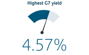 As obrigações do governo do Reino Unido, tanto nominais como indexadas à inflação, continuam a oferecer as yields mais elevadas entre as economias do G7. As medidas proativas para conter a inflação, um orçamento fiscalmente disciplinado — com potencial para novos aumentos de impostos — e a expectativa de uma descida gradual das taxas diretoras do Banco de Inglaterra proporcionam, em conjunto, um enquadramento favorável para uma performance sustentada.
